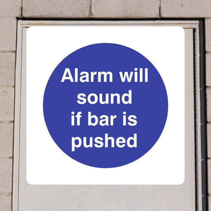 This durable Alarm Will Sound If Bar Is Pushed Sign is designed to clearly warn against unauthorised exit attempts by alerting that an alarm will activate if the panic bar is pressed. Manufactured to withstand indoor and outdoor use, this sign helps enhance security measures in commercial and public buildings. Ideal for compliance with safety and security protocols, it supports risk reduction by deterring unauthorised access and aiding emergency exits. Featuring bold, easy-to-read text and internationally recognised symbols, this sign aligns with best practices recommended in UK safety guidelines and complements CCTV and alarm systems. Suitable for workplaces needing clear emergency exit communication, it meets ISO and HSE recommendations for effective hazard signage.