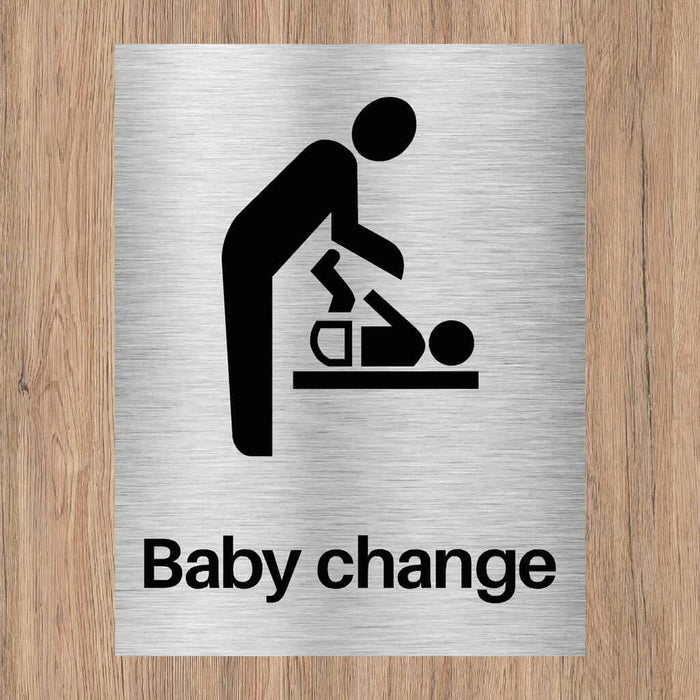 This Baby Change Toilet Sign in brushed silver is an ideal solution for clearly marking baby changing facilities in public washrooms, restaurants, shops and workplaces. Designed with a professional brushed aluminium effect, it provides a smart and modern look that blends seamlessly with any décor. The sign helps parents and carers quickly identify designated baby changing areas, supporting accessibility and convenience in line with UK Equality Act 2010 guidance on inclusive facilities. Manufactured from durable materials, it is suitable for indoor use in toilets, baby changing rooms and shared washroom environments. Featuring easy-to-read symbols, this sign ensures clear communication and enhances customer experience. Supplied with strong adhesive backing for quick installation, it offers a long-lasting, low-maintenance solution. Ideal for businesses seeking to meet hygiene, safety and accessibility expectations while maintaining a stylish, professional environment.