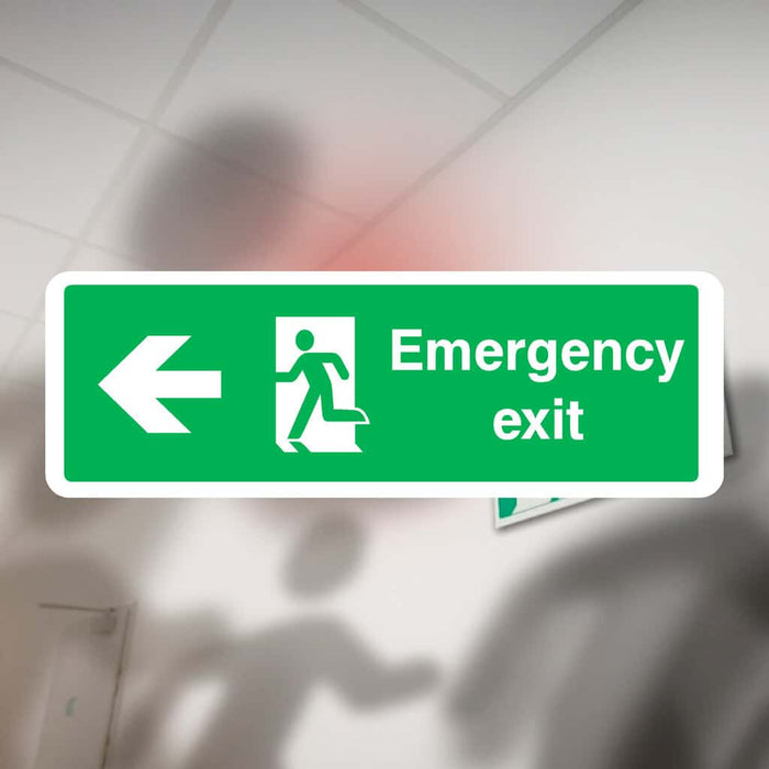 Ensure fast, unambiguous evacuation with this high‑visibility Emergency Exit Sign featuring a prominent left‑pointing arrow. Designed for durability, it’s available in self‑adhesive vinyl, rigid plastic, recycled palboard, composite aluminium or photoluminescent PVC. The glow‑in‑the‑dark option meets BS 5499‑2:1986 and PSPA Class B standards, charging via ambient light to remain luminous even in power outages. The green “running man” pictogram complies with BS EN ISO 7010 (E001 – Emergency Exit Left) and aligns with the UK’s Health and Safety (Safety Signs and Signals) Regulations 1996, which enact Directive 92/58/EEC, requiring industry‑standard safety signage for workplace evacuation routes. Ideal for offices, schools, factories and public spaces, this sign ensures compliance while delivering maximum visibility in low‑light or smoky conditions. Trust The Sign Shed’s quality—trusted by UK safety professionals since 2014—for assured clarity and peace of mind.