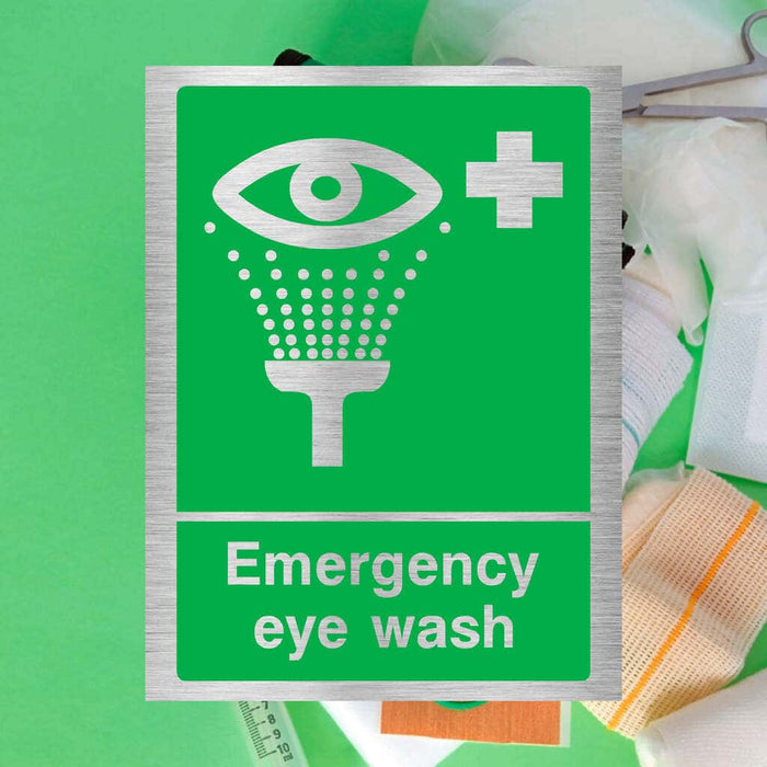 This Emergency Eye Wash Sign is manufactured in 3 mm brushed silver composite aluminium for durability and professional appearance. It’s part of our first aid signs range and clearly marks the location of eyewash stations, helping to ensure quick access, compliance, and enhanced workplace safety. Ideal for environments handling hazardous chemicals, laboratories, factories, warehouses, and industrial facilities.