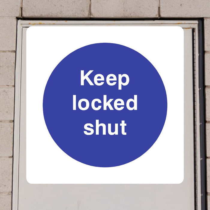 Ensure fire door security with our Keep Locked Shut Sign—a must‑have in any UK workplace. Featuring bold white text on a blue background, this mandatory safety sign clearly instructs that the door must remain locked, supporting fire safety and compliance under the Health & Safety (Safety Signs and Signals) Regulations 1996, the Regulatory Reform (Fire Safety) Order 2005, and BS EN ISO 7010 standards.