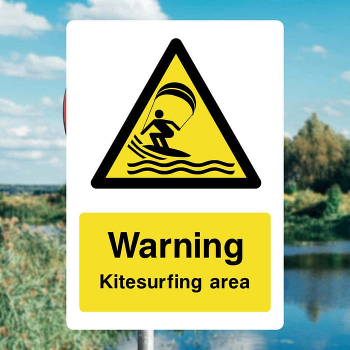 Stay safe and visible with our eye‑catching Kitesurfing Area Warning Sign, designed for both lakeside and coastal locations where kite surfers may be active. Adhering to the Health and Safety (Safety Signs and Signals) Regulations 1996 and BS EN ISO 7010, it conveys a clear hazard warning to all water users — helping prevent collisions between swimmers, boaters, and kite surfers. Manufactured in the UK using recycled and durable materials, this sign offers weather‑resistant longevity while being environmentally conscious. Whether mounted with foam pads, fixed through drilled holes, or applied as a self‑adhesive vinyl, installation is rapid and secure. Produced in Yorkshire with a hallmark of quality, each sign is designed to promote clear communication and compliance with UK safety standards, making it an essential addition for responsible water sports zones.