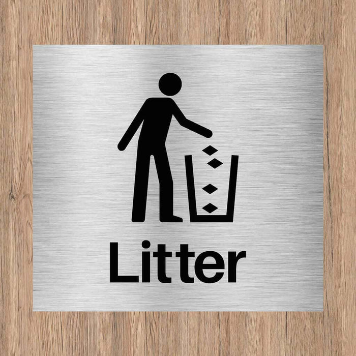 Introducing our Litter Brushed Silver Door Sign, a stylish addition to our extensive range of door signs and room signs. This sign is expertly manufactured by the Sign Shed in Britain using 3mm brushed silver composite aluminium, ensuring durability and a sleek appearance.