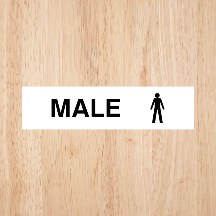 Choose from standard or outline CAPS‑style lettering, making “MALE” instantly legible from a distance. Available in two practical sizes—200 × 50 mm or 300 × 75 mm—and in a variety of durable materials: self‑adhesive vinyl, white aluminium, brushed‑silver aluminium, or brushed‑gold aluminium—so you get both professional aesthetics and suitability for your environment.