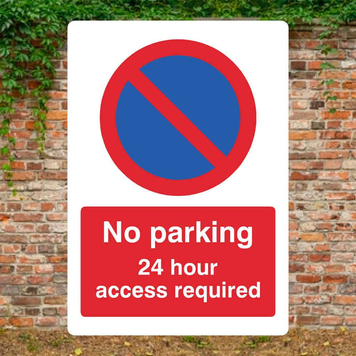 Manufactured in Britain from durable recycled plastic or composite aluminium, this No Parking 24‑Hour Access sign ensures your driveway or entrance stays clear at all times. Featuring bold, high‑contrast lettering, it provides maximum visibility day and night—ideal for driveway, access restriction, and private property applications. Approved to BS ISO 7010 standards for safety signage, this sign also supports compliance with HSE workplace transport guidance and complements the Highways Act 1980 for private road users. Pre‑drilled fixings make installation simple on gates, walls, or posts. Available with optional RA1 reflective face for enhanced nighttime visibility and anti‑graffiti coating for long‑-lasting performance. A practical solution to prevent unauthorised parking, maintain clear access for emergency or delivery vehicles, and reinforce your right to uninterrupted entry.
