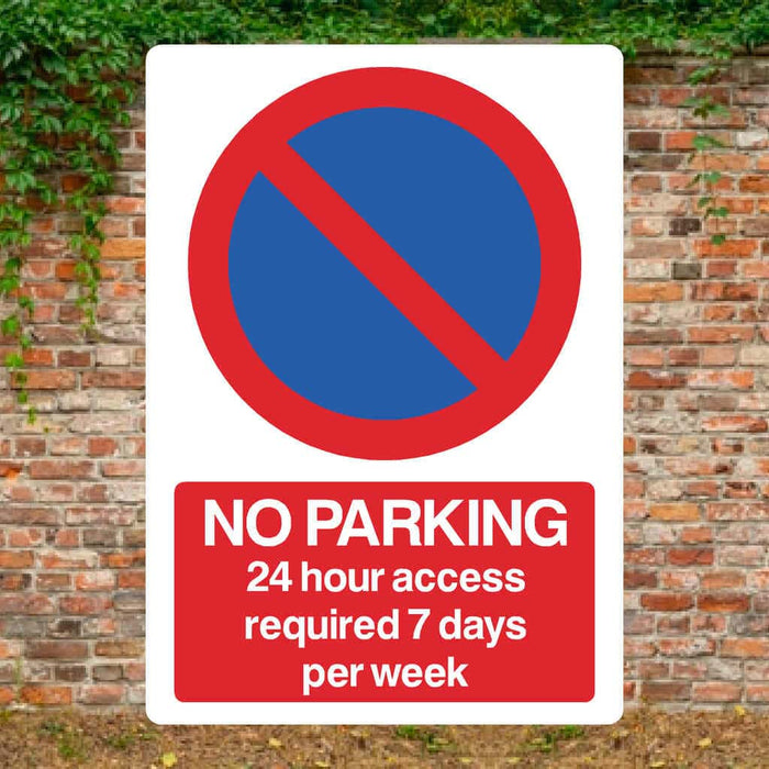 Ensure uninterrupted 24‑hour access to your driveway or entrance with this durable No Parking sign. Manufactured in Britain from high-quality recycled plastic or composite aluminium, it offers excellent weather resistance and complies with UK “no parking at any time” standards under the TSRGD. Featuring bold red and black lettering, this sign clearly signals to drivers the requirement for constant access.