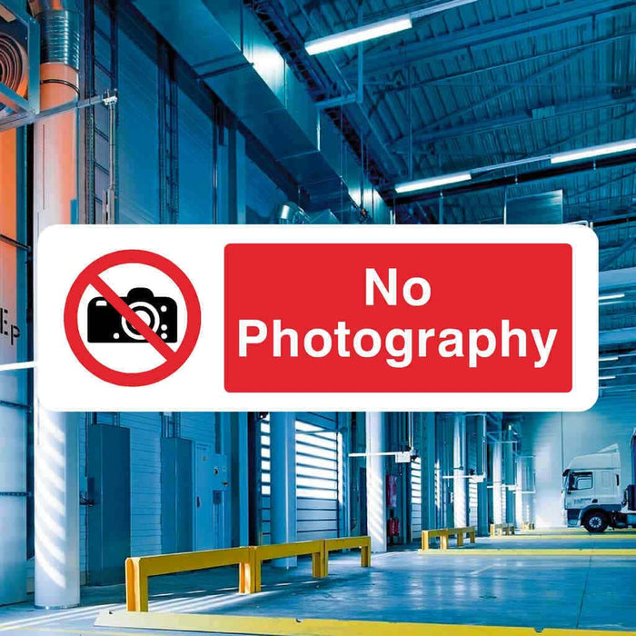 This No Photography Sign Landscape is manufactured to clearly inform visitors and staff that photography is strictly prohibited in the area. Ideal for use in sensitive or secure locations such as offices, warehouses, and retail environments, it helps protect privacy and prevent unauthorised image capture. Featuring high-visibility graphics and durable materials, this security sign complies with best practices for workplace safety and site security. Suitable for both indoor and outdoor use, it supports compliance with UK data protection regulations and reinforces your site’s security policies. Perfect for businesses needing effective visual communication to deter unwanted photography and uphold confidentiality. Manufactured to ISO 7010 standards where applicable, this sign is a vital addition to your CCTV and security signage.