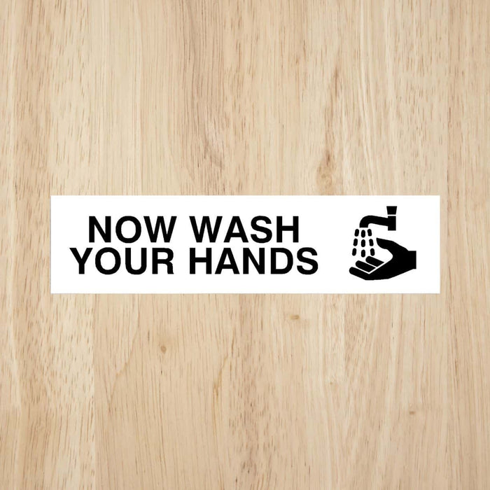 Display this Now Wash Your Hands Sign to easily identify for people to wash their hands in your building. The sign features text in capital letters, ensuring clear visibility. Available in two styles (standard and outline text), two sizes (200 x 50 mm and 300 x 75 mm), and four sign materials (self-adhesive sticker, white aluminium, brushed silver aluminium, and brushed gold aluminium), this sign offers flexibility to suit your specific needs.