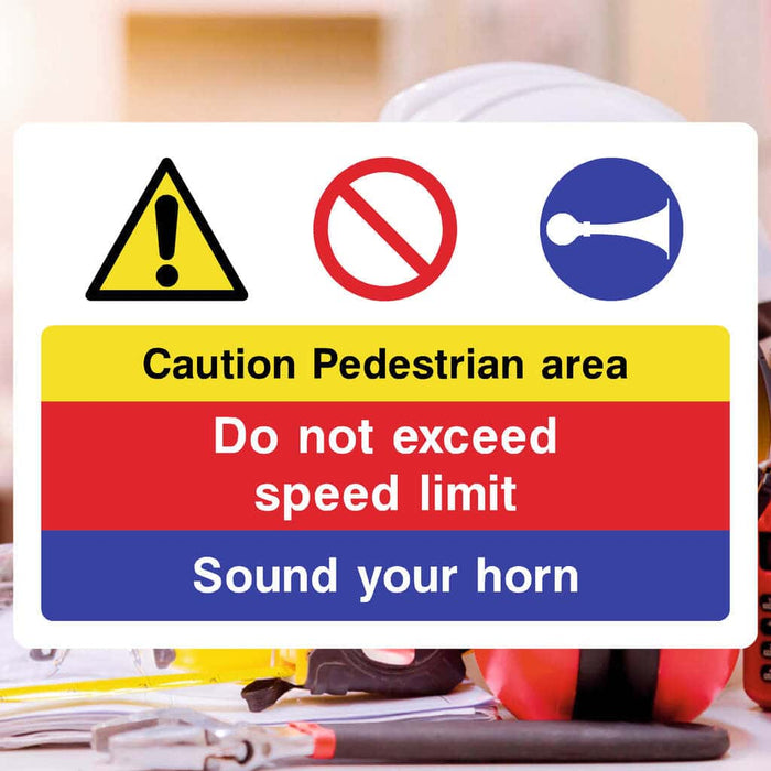 Help enforce safety in shared zones with this Pedestrian Speed Limit Sign, clearly warning drivers to slow down where foot traffic is present. Ideal for warehouses, car parks, loading bays, or private roads, this sign features a clear "Pedestrian Area" message beneath. Manufactured in the UK by The Sign Shed using weather-resistant materials, it's suitable for both indoor and outdoor use. The design supports compliance with workplace transport safety advice from the HSE, helping to reduce risk in mixed-use environments. Choose from rigid plastic, composite aluminium or vinyl sticker to suit your installation needs. This highly visible speed restriction sign is part of our multi-message safety signs range, trusted by facilities managers, logistics hubs and construction sites across the UK.