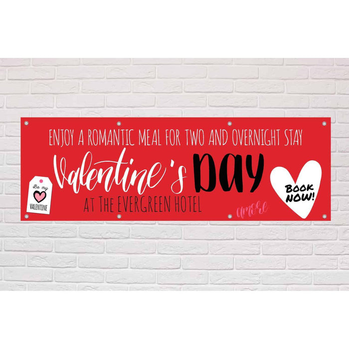 Make this Valentine's Day extra special with our custom Personalised Valentine's Day Hotel Offer Banner. Tailor the details of your offers to create a unique and eye-catching banner that will grab the attention of potential customers. With just a few clicks of the mouse, you can customise this banner online and showcase your hotel's Valentine's Day promotions.