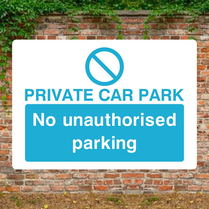 This Private Car Park Parking Sign in bright blue is manufactured for clear and effective communication of no unauthorised parking rules. Perfect for private and commercial car parks, it helps deter unauthorised vehicles and ensures parking spaces remain reserved for permitted users. Designed with durable, weather-resistant materials, this sign maintains high visibility and longevity in outdoor conditions. It complies with UK safety regulations and aligns with HSE recommendations for prohibition signage, following ISO standards where applicable. The vibrant blue background enhances recognition and encourages compliance, supporting safer and more organised parking management. Ideal for businesses, residential areas, and restricted parking zones seeking a professional signage solution.