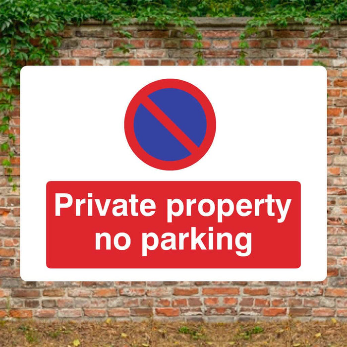 Prevent unauthorised parking with this robust Private Property No Parking sign, landscape format. Manufactured from durable recycled plastic or composite aluminium, it's built for long-term outdoor use in all UK weather. Choose options like RA1 reflective coating for visibility in low light, anti‑graffiti face and pre‑drilled or post‑mounting holes. Featuring bold white text on a red background and a prohibition symbol, it meets TSRGD guidance for no parking signs, helping you control access to driveways and private land. Ideal for residential, commercial or gated premises, it supports compliance with UK safety standards—such as the Health and Safety (Safety Signs & Signals) Regulations 1996. Highly visible from a distance and easy to install, this sign is a practical, cost-effective solution to deter parking violations and maintain clear access.