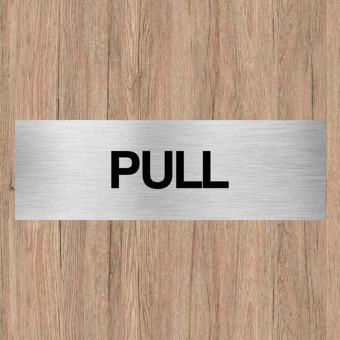 Pull Brushed Silver Aluminium Door Sign Landscape