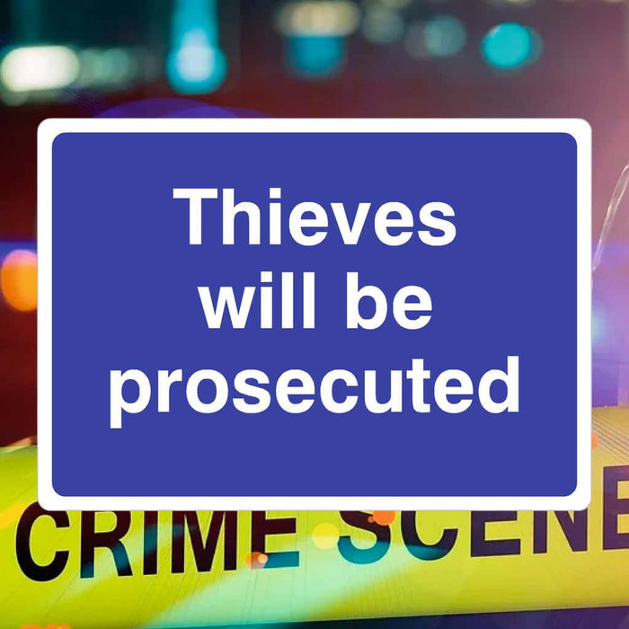 This Thieves Will Be Prosecuted sign in blue is manufactured from durable materials designed to withstand outdoor conditions, making it ideal for enhancing site security. Featuring clear, bold lettering, this security warning sign deters theft and unauthorised access, helping protect your property effectively. Suitable for commercial and residential use, it meets relevant safety standards and supports compliance with UK security signage best practices. Installing this sign alongside CCTV and security measures reinforces your commitment to preventing crime and maintaining a safe environment. Ideal for warehouses, retail premises, and private properties where theft prevention is a priority.