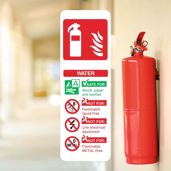 Clearly identify the location and correct use of your fire safety equipment with this Water Extinguisher Sign, designed for indoor environments. Ideal for offices, schools, warehouses and other commercial settings, this fire safety sign informs staff and visitors that the extinguisher is suitable for Class A fires involving combustible materials such as wood, paper or textiles.