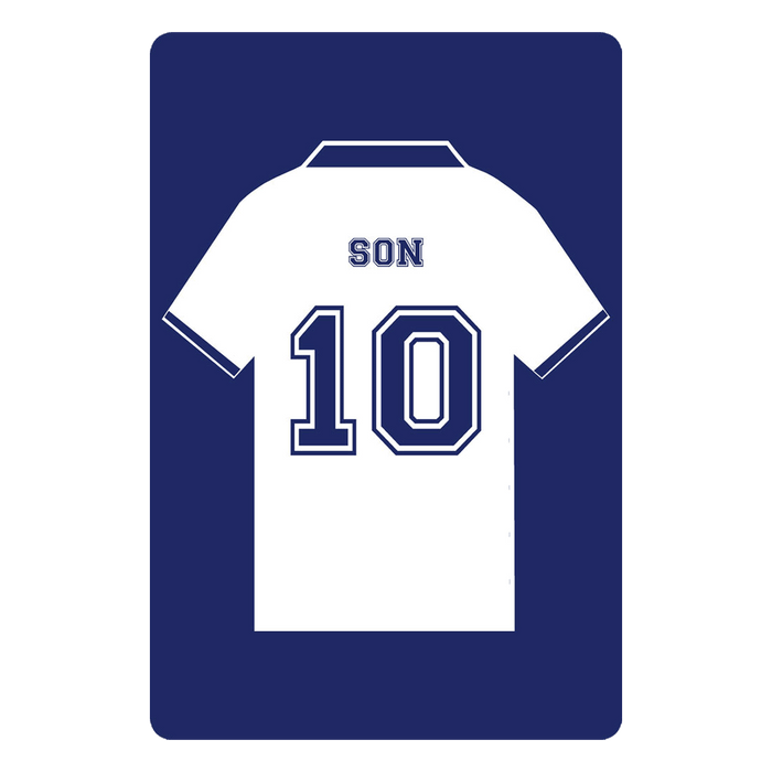 Create a personalised football shirt sign white and navy london online. This version is designed for football fans, with the distinctive white with a blue trim shirts, and can be customised with the player name and number.